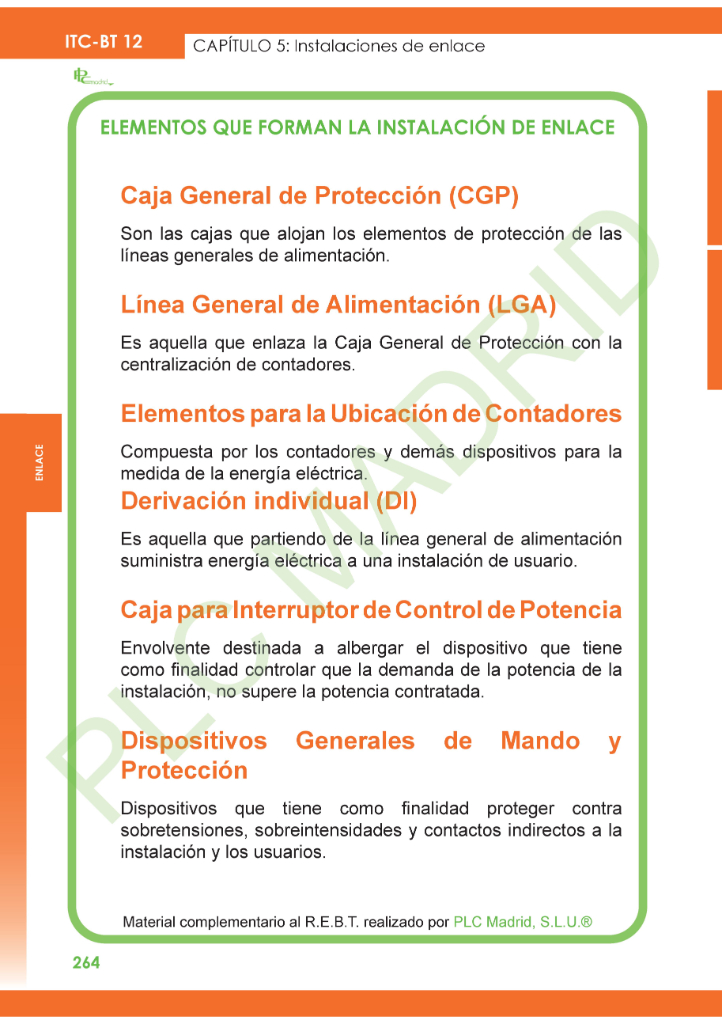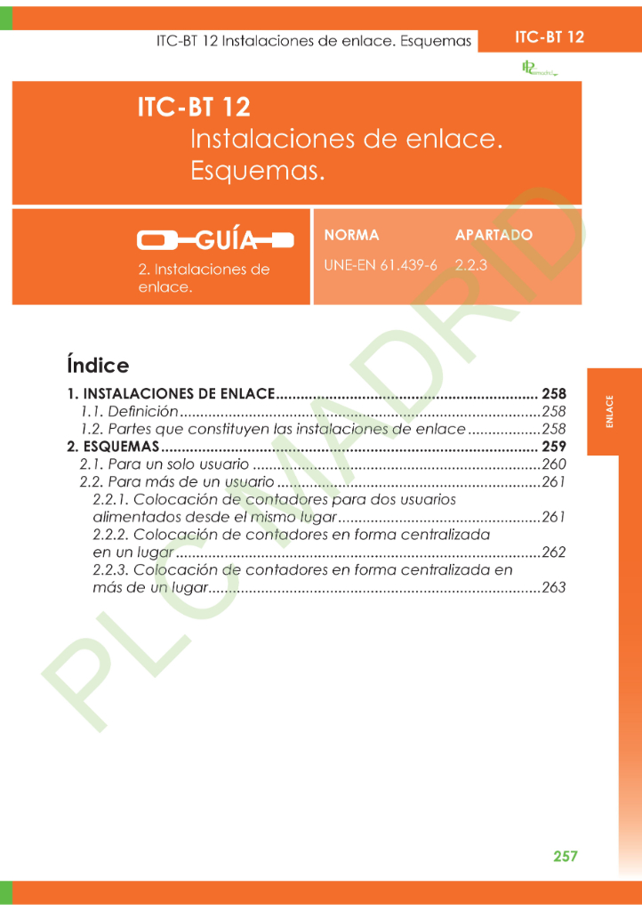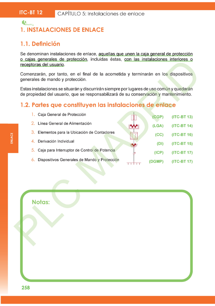 Esta instrucción técnica es de gran importancia y de uso frecuente, tanto para obra nueva coma para reformas de finca, pues define las distintas partes que constituyen la instalación de enlace. Y fija los distintos modelos de esquema en función del tipo de instalación.