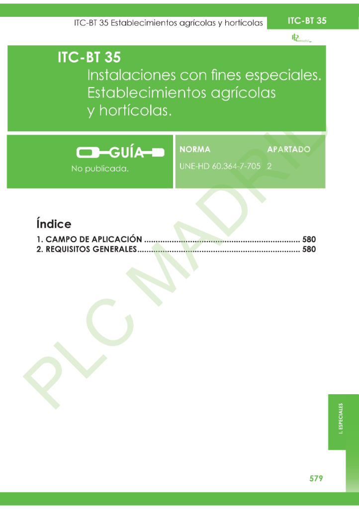 Esta ITC le proporciona al instalador una información valiosa en relación a las condiciones de diseño e instalación definidos para las instalaciones en establecimientos agrícolas y hortícolas.