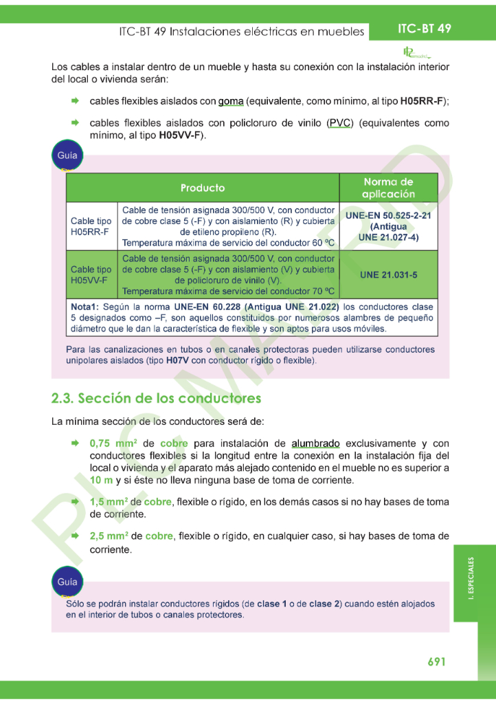 La ITC fija los requisitos de los equipos. Tipo de conductores, secciones mínimas, canalizaciones admitidas, tipos de conexiones, grado de protección exigible, etc.