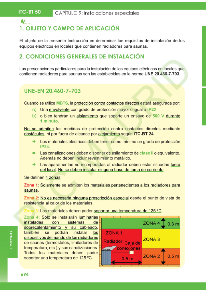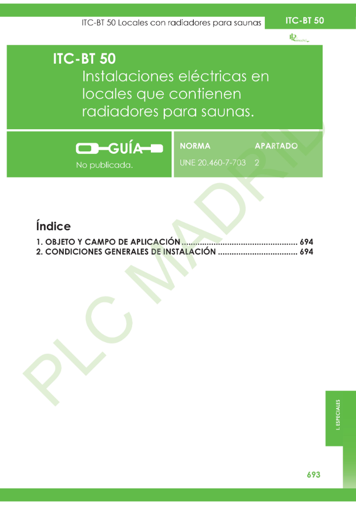 Esta instrucción técnica fija el objeto, campo de aplicación y las condiciones de instalación. En realidad la ITC remite directamente a la norma UNE-EN 20460-7-703. PLC MADRID le ofrece un resumen de esta norma, indicando los aspectos más destacados.